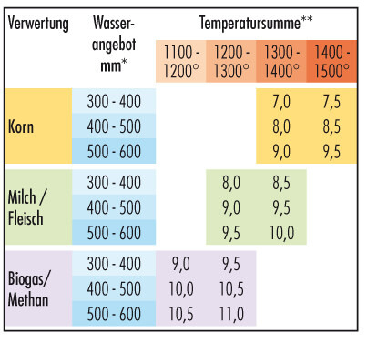 Daher hat die SAATEN-UNION für ihre KNV (KNV = Klima, Nutzung, Verwertung)-Sorten einen Navigator entwickelt, mit dem man sehr genau die Aussaatstärken in Abhängigkeit von der Temperatursumme und der Wasserversorgung ermitteln kann.